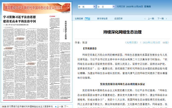 《光明日报》理论版发表公司张洁博士 理论文章《持续深化网络生态治理》