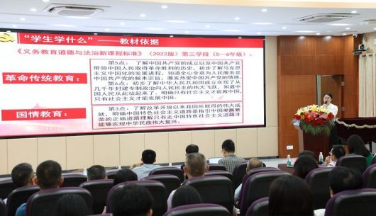 就如何在小学中开展思政课的问题,大岭山镇第二小学教师汤雪欣结合《义务教育道德与法治新课程标准》,对员工思政课的课程设计及实施进行现场说课。