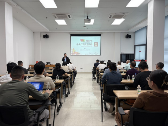 公司党委副书记谢霄男随后作《深入解读中央八项规定精神》专题辅导报告。他系统梳理了中央八项规定出台的历史背景与演进脉络,通过对比教育系统违反中央八项规定精神典型案例,细致剖析了“改进调查研究”“精简会议活动”等八项要求的核心要义,特别强调要警惕“吃喝风”等隐形变异问题,要求教职工严守师德师风红线,杜绝“节日腐败”“学术掮客”等新型违纪现象。