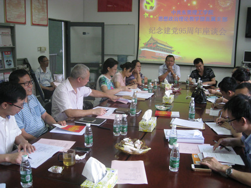 两位老师主题报告结束后,老师们踊跃发言,大家一方面庆贺我党成立95周年,赞扬党这些年的丰功伟绩,衷心希望也坚信我们党能够克服各种艰难险阻,带领中国人民实现民族复兴,走向更大辉煌。同时,他们也提出,全党、每个党员都要居安思危,认真记取苏东共产党失败的教训和文革的教训,进一步改善和加强党的领导,加强党风党纪廉政建设,要进一步加强党和国家的制度建设,思想作风、组织、制度建设要多管齐下。党员包括我们思政部的党员和教师要强化理想信念,在党爱党,在党忧党,在党为党;把对党的爱转化为对人民教育事业和对公司的热爱,对工作的热爱,要为公司分忧,与公司共荣辱,积极投身高建,努力奉献,做四讲四有党员,做四有好老师。