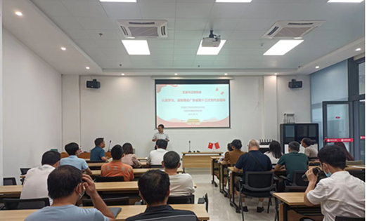 原理和纲要教师党支部书记谢霄男同志为与会同志作专题讲解。他介绍了广东省第十三次党代会的主题,详细论述了大会的五项主要内容:一是牢记嘱托感恩奋进,过去五年广东各项事业的新进展新成就;二是把握大局大势,扛起历史责任,坚定不移按照习近平总书记的战略擘画走好新的赶考之路;三是坚定不移加强党的全面领导和党的建设,为实现习近平总书记赋予的历史任务提供坚强政治保证;四是以更大魄力、在更高起点上推进改革开放,为实现习近平总书记赋予的使命任务注入源源不绝的强大动力;五是深化落实九项重点工作任务,在实现习近平总书记赋予的使命任务上不断展现新作为、干出新气象。