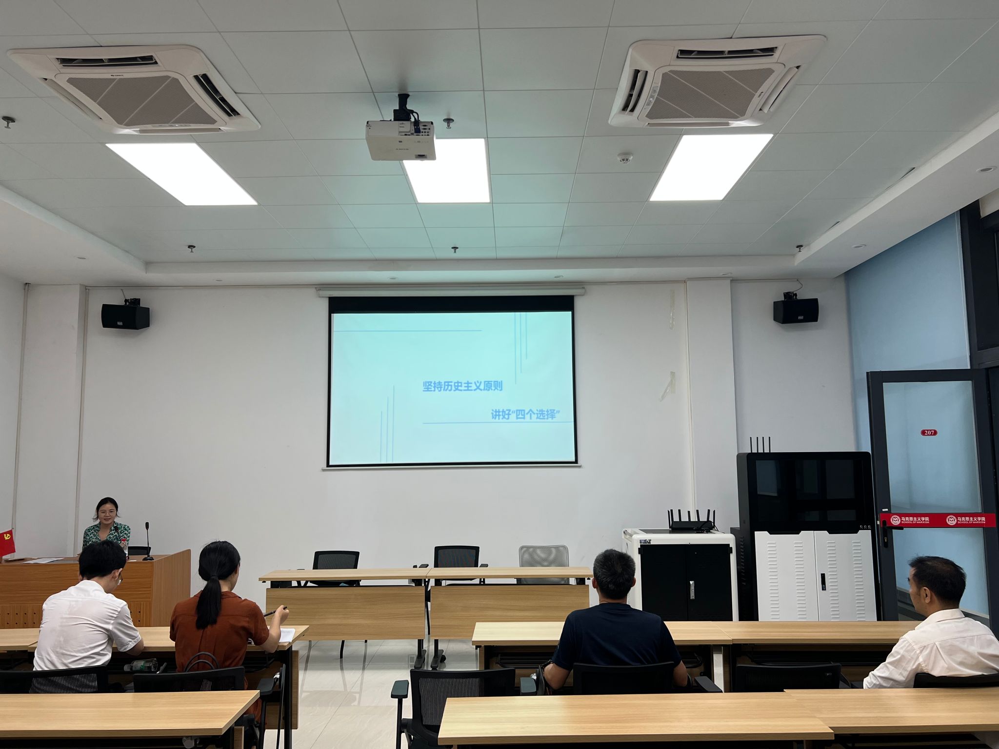 9月7日,纲要教研室在公司207会议室召开集体备课会,会议由纲要教研室主任陈立中教授主持,教研室全体教师参加。本次集体备课会以“坚持历史主义原则,讲好‘四个选择’”为主题。陈立中担任主讲人。