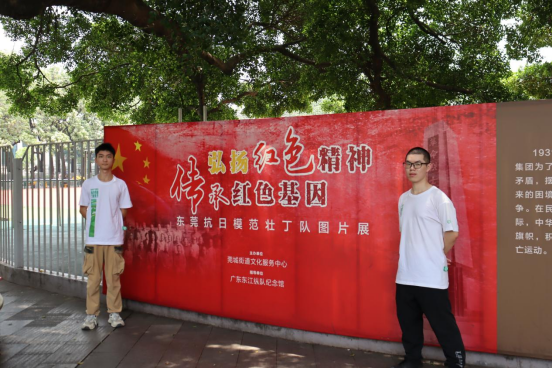 转过碑亭,米格15战机的钢铁机身仍透着硝烟气息,莞城革命遗址长廊里的老照片与文献,串联起东莞党组织从萌芽到壮大的峥嵘路。在抗日模范壮丁队成立遗址图片展前,队员们久久伫立,无声的凝望是对 “赓续” 二字最生动的践行,镜头定格的瞬间,更是对“赓续红色血脉”承诺的无声践行。